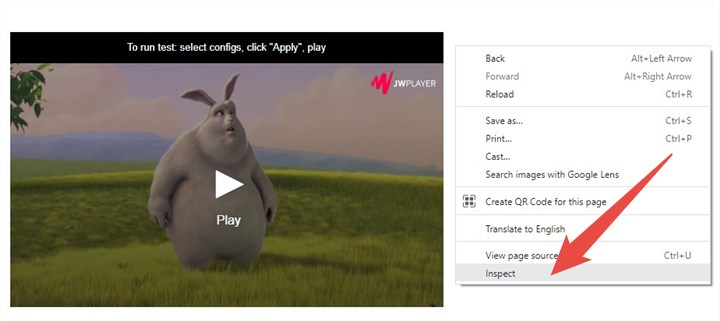 Step 1. On the web page which loads the JW Player video, right-click on the area which is away from the video and find the Inspect option.