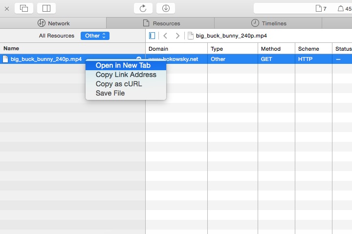 In your Safari Browser, right-click on the web page > Choose Inspect Element > Find Network > Under the drop-down list which is located besides All Resources feature, find Other option > Right click on the JW Player file > Choose Copy Link Address.